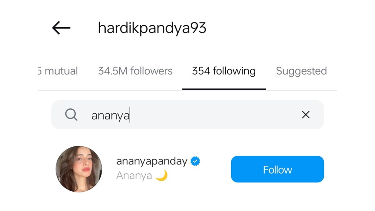 Hardik Pandya Following Ananya Panday on Instagram