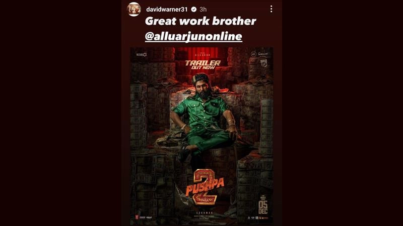 David Warner is known for his reels and tik-toks, where the cricketers often enacted actor Allu Arjun's role from the hit movie Pushpa: The Rise, and now with the launch of the trailer of its sequel Pushpa 2: The Rule, former Australian player has lauded his 'brother'. Warner took to social media platform X and lauded Arjun for great work in the trailer, which has taken the internet by storm. Warner and Arjun share a good relationship and have often seen interacting via social media posts. David Warner is Not Making A Cameo in Allu Arjun’s 'Pushpa 2', Leaked Images from Nithiin’s Robinhood Movie Go Viral.