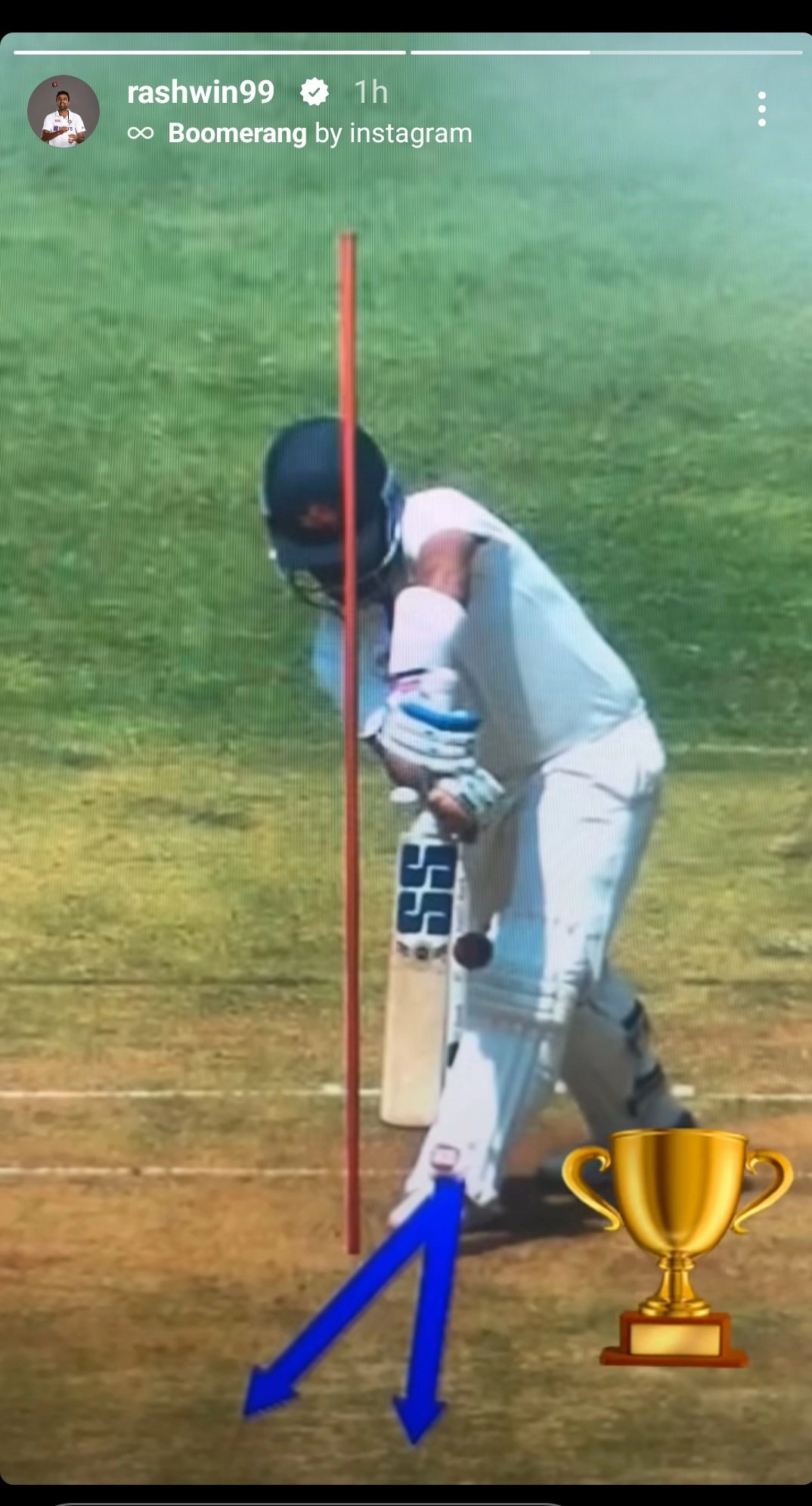 Ajinkya Rahane last played a Test match for India in the West Indies tour. Since then he has been out of the Indian team grinding his time with the Mumbai team in domestics. He had a pretty poor Ranji Trophy 2023-24 season but he scored a crucial half-century on Day 2 of the Ranji Trophy 2023-24 final and remained unbeaten overnight. Ravichandran Ashwin, his former Indian teammate, shared an Instagram story pointing at one of his technical flaws where Rahane's head, hands and toes are not aligned in the same line. It indicated that his head is falling over on the offside. Fans were stunned by Ashwin's keen observation and made the story viral on social media. Ranji Trophy 2024 Final: Ajinkya Rahane, Musheer Khan's Masterclass Makes Vidarbha Bowlers Toil on Day 2.
