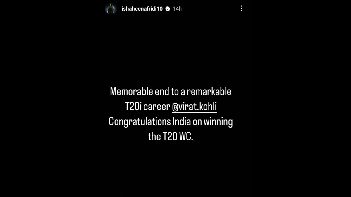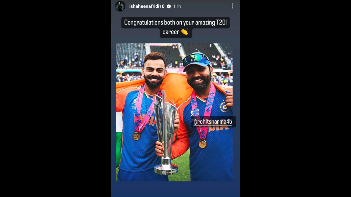 India created history by winning the ICC T20 World Cup 2024. The India National Cricket team won the title going undefeated in the tournament and won the nervy final against the South Africa National Cricket Team. Pakistan National Cricket teamās vice-captain and star bowler Shaheen Shah Afridi congratulated team India. He tagged stars Rohit Sharma and Virat Kohli in the reel. India and Pakistan faced each other at the group stage with Men in Blue winning the match in New York.Ā Sachin Tendulkar Posts Congratulatory Message for Virat Kohli and Rohit Sharma As Both Players Retire From T20I Cricket After IND vs SA ICC T20 World Cup 2024 Final (See Post).