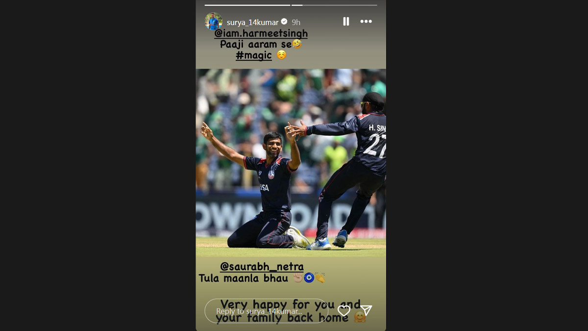 Suryakumar Yadav Posts Instagram Story for Saurabh Netravalkar