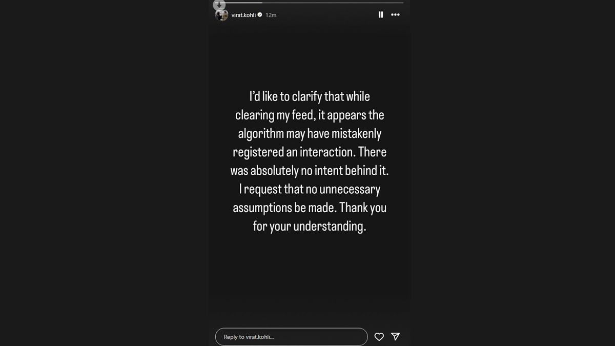 #ViratKohli latest Instagram story clarifying liking the post of avneet kaur pic.twitter.com/diiPEmB4kt