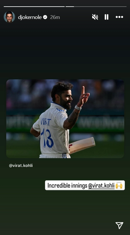 Novak Djokovic's Instagram Story for Virat Kohli
