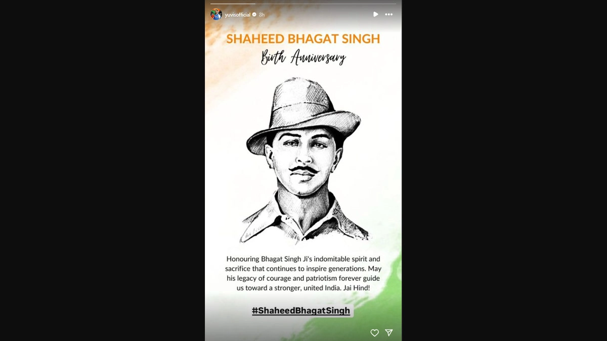 Yuvraj Singh paid tribute to Bhagat Singh on his 117th birth anniversary. Taking to Instagram, the former India national cricket team all-rounder shared a story which featured a picture of the legendary freedom fighter with the message, a part of which read, "Honouring Bhagat Singh Ji's indomitable spirit and sacrifice that continues to inspire generations." The ex-cricketer recently made the news after he appeared in the Club Prairie Fire podcast where he hilariously revealed that he had to wear his actress-girlfriend's 'pink slip-ons' to the airport after she had packed her shoes in the luggage. Yuvraj Singh's ‘Pink Slip-Ons’ Story Involving Actress-Girlfriend Riles Up Internet, Fans Speculate If it was Deepika Padukone.