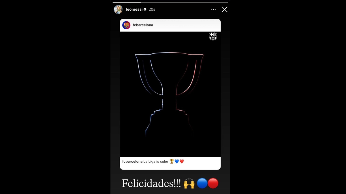 Lionel Messi was a crucial cog in Barcelona's title-winning cycle, a legacy that continues with Barca clinching the La Liga 2024-25 title sans the Argentina legend. Messi, the forever Barcelona supporter, took to Instagram and congratulated his former club for securing their 28th La Liga title by clinching the ongoing Spanish League season ahead of defending champions Real Madrid, who at the start of 2025 looked prime to retain the title. During his 17-year career at Barca, Messi won as many as 10 La Liga titles, which helped the club to become the second most successful team in league history behind Real Madrid (36). The 37-year-old, apart from sharing a story, also commented on Barcelona's post. Barcelona Wins La Liga 2024-25; Beats City Rivals Espanyol in Catalan Derby To Secure 28th Spanish League Title.