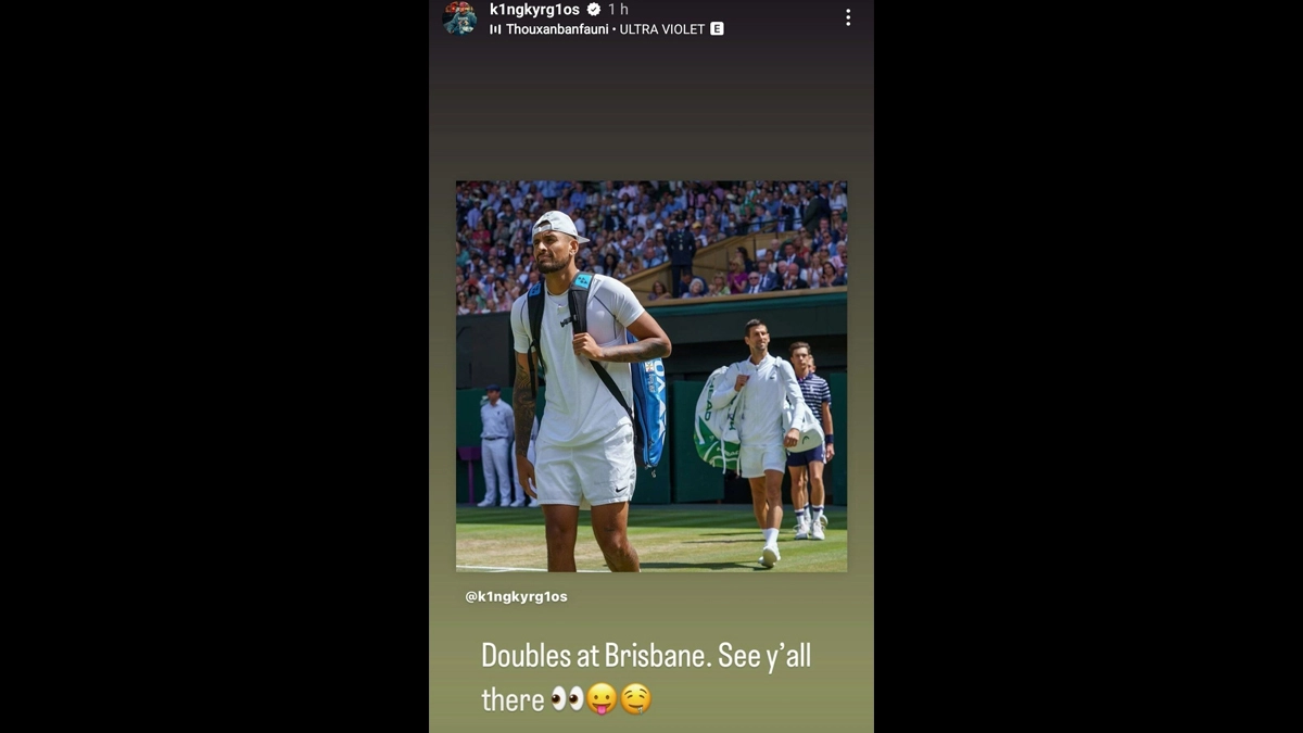 Nick Kyrgios is slated to play doubles tennis alongside Novak Djokovic at Brisbane International 2025. The 29-year-old Australian tennis star took to Instagram to share a picture of himself and Novak Djokovic entering a court at Wimbledon 2022 and wrote, "Doubles at Brisbane. See y'all there." Nick Kyrgios has not been in action for quite a while now and will return to the tennis court alongside the Serbian great and hope to begin the 2025 season on a high. Nick Kyrgios last played a competitive match at the Stuttgart Open in 2023. Novak Djokovic Set To Compete in Brisbane International 2025; Serbian Tennis Star Set to Feature in Tournament for First Time Since 2009.