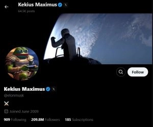 Elon Musk Renamed HIs X Account 'Kekius Maximus', Put Profile Picture of "Pepe the Frog"