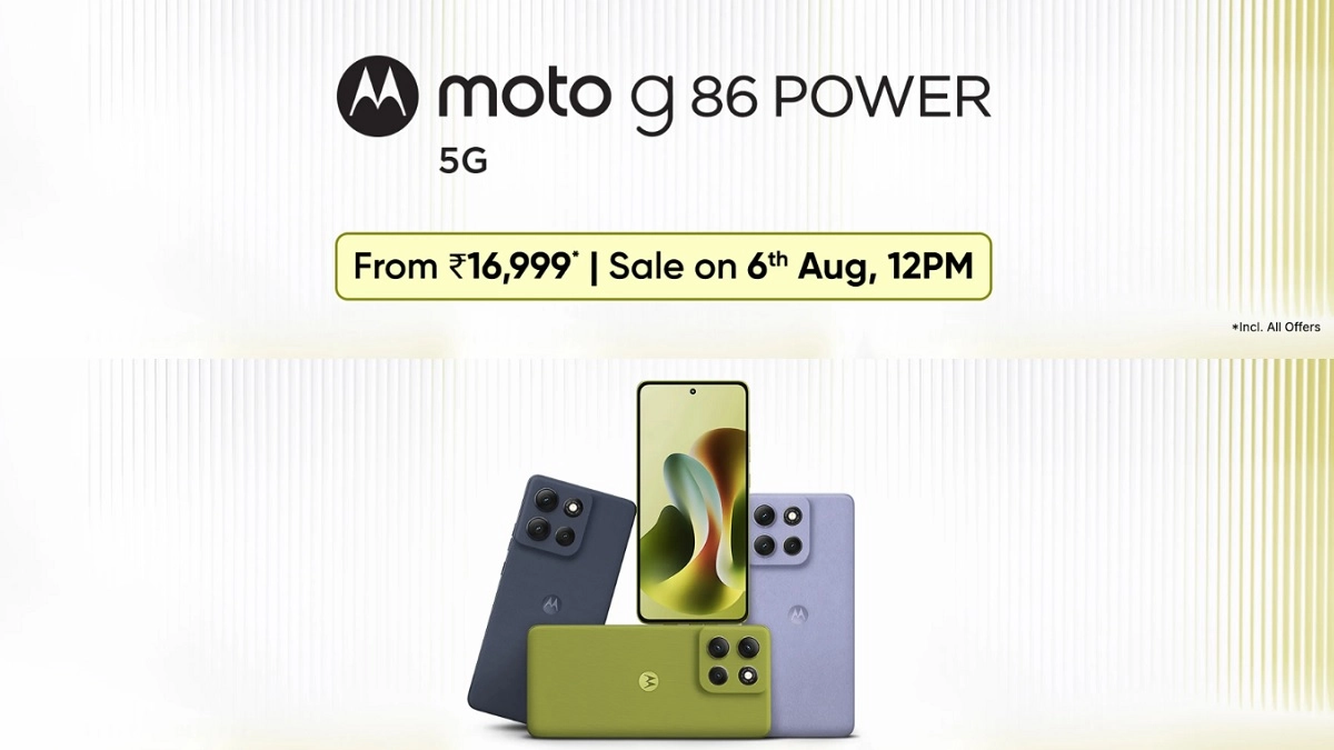Moto G86 Power 5G has been launched in India with a MediaTek Dimensity 7400 processor paired with 8GB LPDDR4X RAM (expandable using RAM Boost up to 16GB) (expandable up to 1TB using a microSD card). Moto G86 Power 5G comes with a 50MP Sony LYTIA 600 camera, an 8MP ultrawide (118 FOV) camera with Macro Vision capability and a 32MP selfie shooter. It has a 6.7-inch AMOLED 2.5D Super HD display with 4,500 nits peak brightness, Corning Gorilla Glass 7i protection, 120Hz refresh rate and HDR10+ support. The smartphone has a 6,720mAh battery with TuboPower 33W charging and is offered in PANTONE Cosmic Sky, PANTONE Golden Cypress and PANTONE Spellbound colours. Moto G86 Power 5G price in India starts at INR 17,999, and with a discount, it is available at INR 16,999. The official sale will begin on August 6, 2025. Vivo X Fold5 Sale Begins Today in India, Premium Foldable Smartphone Features Snapdragon 8 Gen 3 and 50MP Triple Camera; Check Price, Other Specifications and Features.