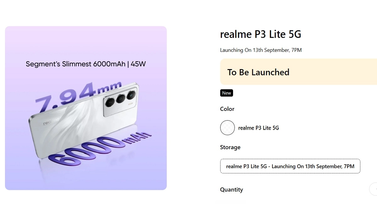 Realme P3 Lite 5G will be launched in India on September 13, 2025 (today) with a 6,000mAh battery, 7.94mm thickness and 197 gram weight. The upcoming Realme smartphone will be launched at 7 PM IST and have 45W fast-charging support, MediaTek Dimensity 6300 5G chip, 128GB internal storage and 6GB RAM that can be expanded up to 12GB more using storage. Realme P3 Lite 5G will have a 120Hz display, 300% volume mode, an IP64 rating, and military-grade shock resistance certification. Realme P3 Lite 5G price will be below INR 10,000, and it will be offered in Lily White, Purple Blossom and Midnight Lily. POCO M7 Plus 5G New 4GB RAM Variant Launching on September 22, 2025; Check Price Reveal Date, Confirmed Specifications and Features.