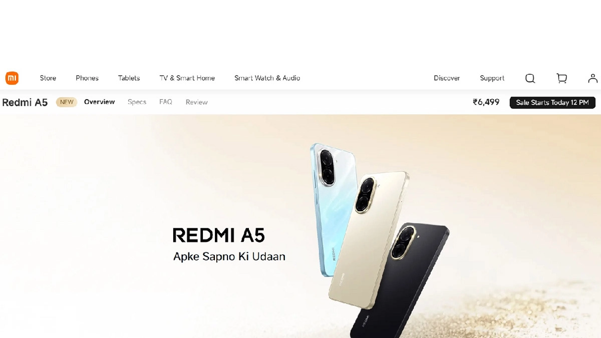Redmi A5 Sale at 12 PM in India Today