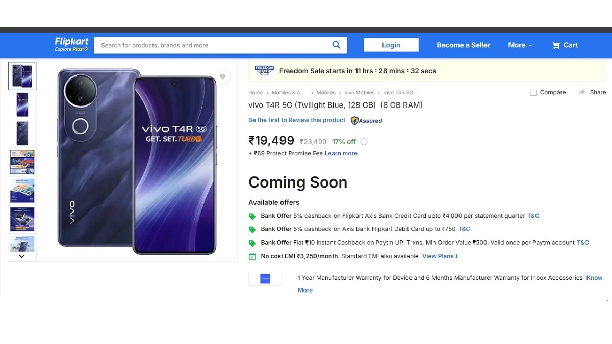 Vivo T4R 5G Price in India Revealed Today, Sale Begins on August 5