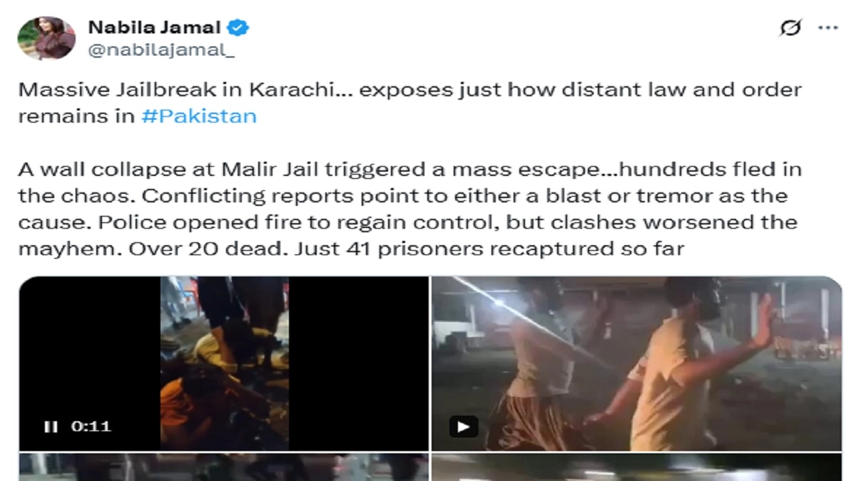 Karachi: Sir @AdityaRajKaul During earthquake tremors, Thousands of prisoners escaped from Malir Jail by breaking walls. The prisoners snatched weapons from police personnel and opened fire, resulting in one prisoner killed and five injured. Police launched a search operation,… pic.twitter.com/lx8BqOvC4T