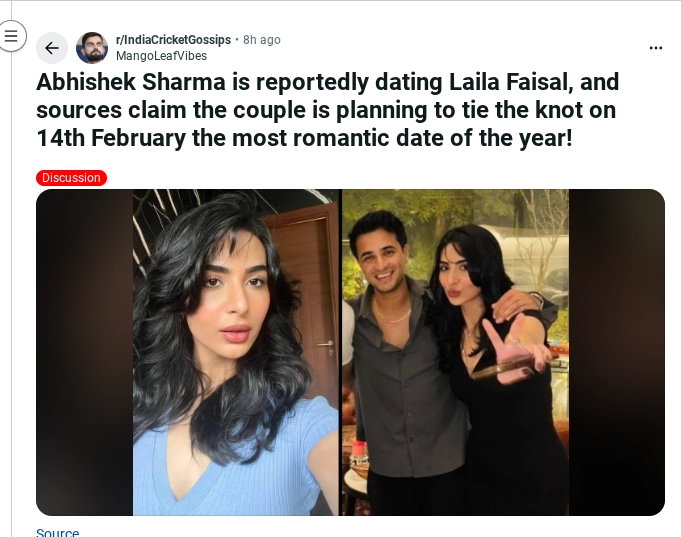 Viral Reddit Post ClaimingĀ Abhishek Sharma to Marry Laila Faisal