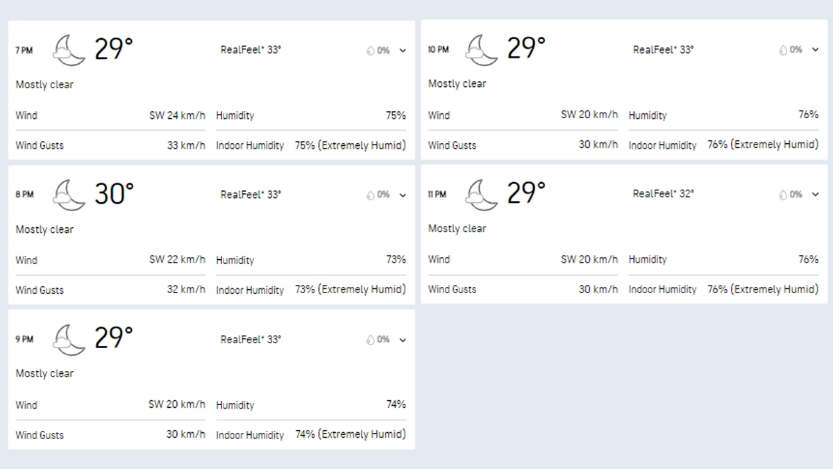 The weather in Visakhapatnam on March 31 is expected to be clear. Being an evening match, humidity could be a major factor. We can expect above 73% humidity in the southern. Temperatures however will vary between 29 to 30 degrees Celsius. And no rain is expected on the match day.