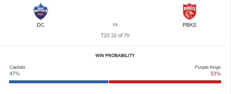 Punjab Kings hold a slight edge over Delhi Capitals, according to Google Predictions for this game. Mayank Agarwal's men have a win probability of 53%, slightly higher than what Delhi Capitals have--48%. However, it is to be kept in mind that this will change when the game starts and progresses.