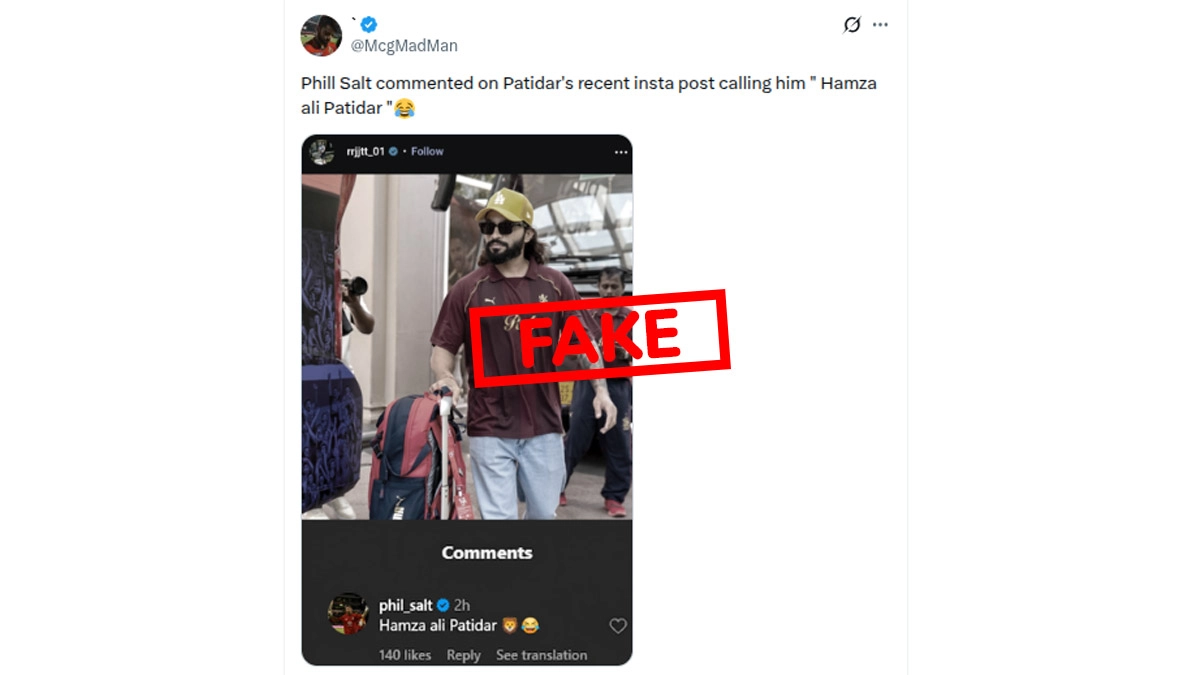 Social media has been flooded with a viral screenshot suggesting that England opener Phil Salt left a curious comment on an Instagram post by his Royal Challengers Bengaluru (RCB) teammate and captain, Rajat Patidar. The alleged comment, which simply reads "Hamza Ali Patidar," has sparked intense debate, memes, and speculation among cricket fans during the ongoing IPL 2026 season. The comment is in reference to the lead character Hamza Ali Mazari in the movie Dhurandhar, played by Ranveer Singh. Fact Check: Viral Video Claims MI Team Bus Delayed for Hardik Pandya's Girlfriend Mahieka Sharma.