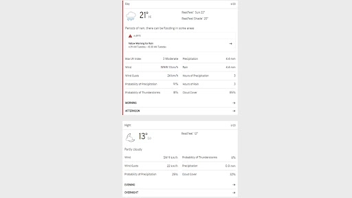 Expected Weather in the Afternoon