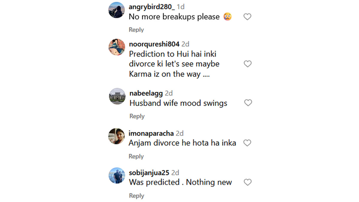 Sana Javed, in the viral Instagram video, is seen turning in the direction opposite to Shoaib Malik and avoiding looking at the ex-Pakistan cricketer who signed a bat. Some fans noticed this and speculated that a divorce was on the way for the couple. Some, on the other hand, felt that this wasn't as serious as was being claimed and that it was just a case of husband and wife having mood swings together. See some reactions below. Fans Tease Shoaib Malik’s Wife Sana Javed With 'Sania Mirza' Chants During PSL 2024 Match, Video Goes Viral.