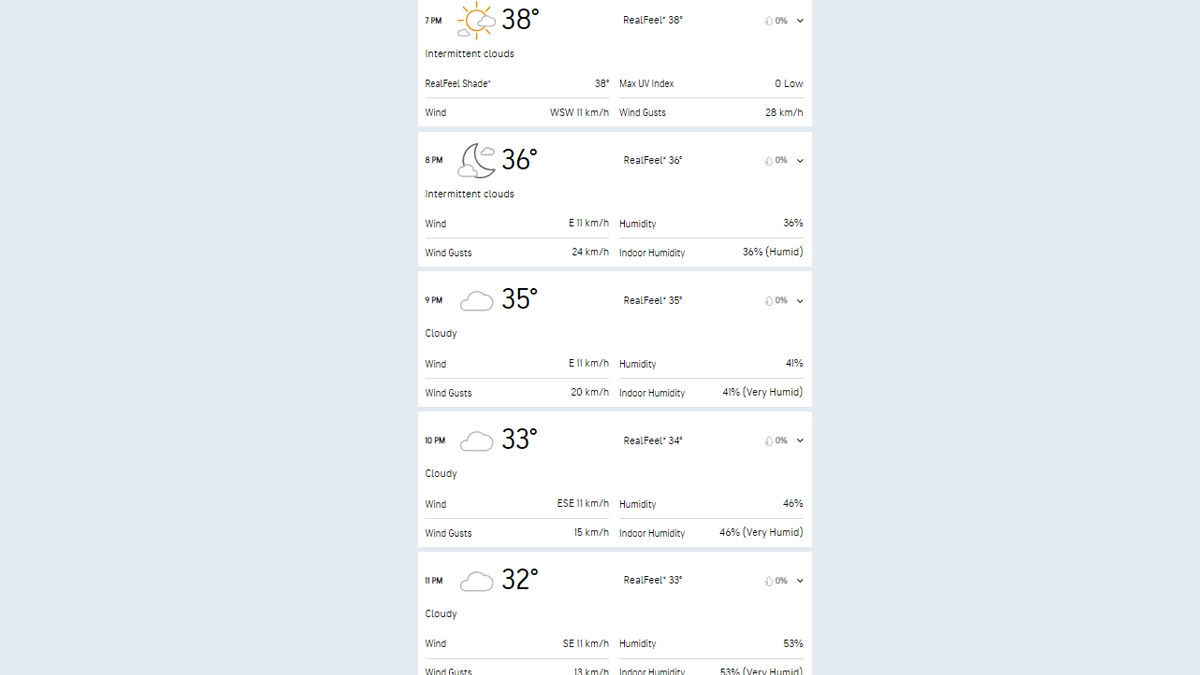As per the weather report stated above the conditions during the GT vs KKR IPL 2024 match will become cloudy as time progresses. There are no chances of rainfall during the time of the game. The temperature at the time of the GT vs KKR IPL 2024 clash will vary between 32-38 degrees Celcius.