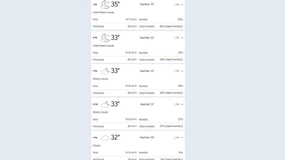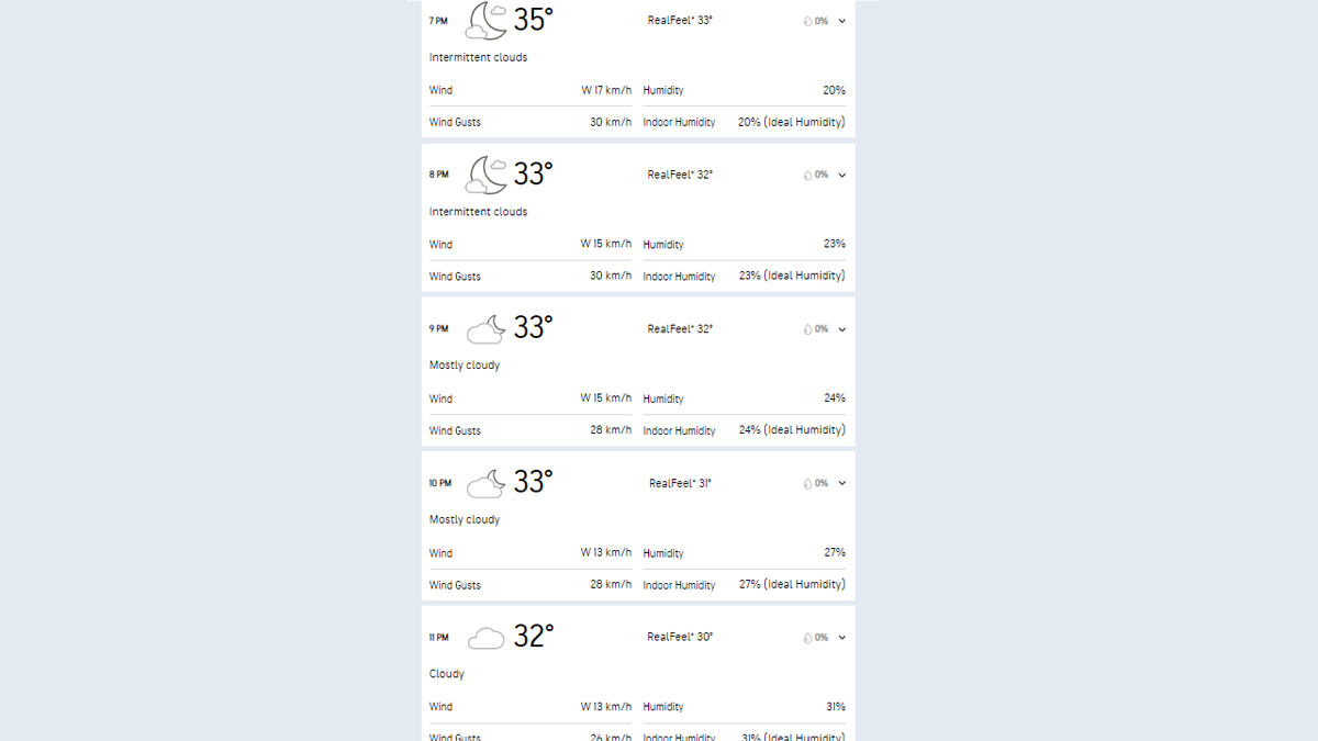 The weather during the GT vs PBKS IPL 2024 match in Ahmedabad will get a bit cloudy as the match progresses. But looking at the weather report there are no chances of rain during the time of the match. The temperature will vary between 32-35 degrees Celcius.