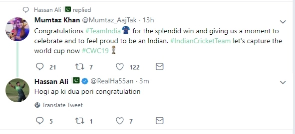Pakistan lost their last game against India massively 89 runs at The Old Trafford on June 16, 2019. Post which the Men in Green have gone through immense flak as they lost the game. Sarfaraz Ahmed, the captain of the side has been trolled consistently for the decisions, his fitness levels and above all the loss. Needless to say that the Indian fans really rejoiced the victory and they posted tweets on social media expressing their excitement. Interestingly, Pakistani pacer while responding to one of the Indian fans ended up cheering for the Men in Blue. India vs Pakistan Cricket Score 22th ODI Match.