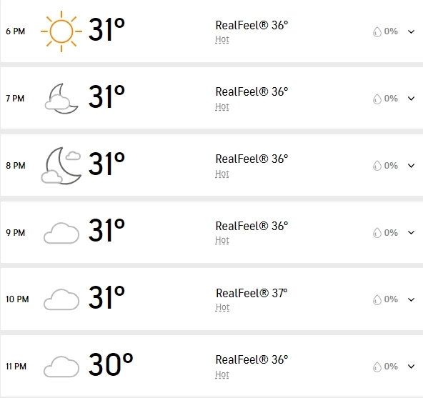 According to this report, the weather would be perfect for a good game of cricket. However, it is likely to be humid out in the middle with temperatures ranging from 30-31 degrees celsius. There also seems to be no rain threat to this game.