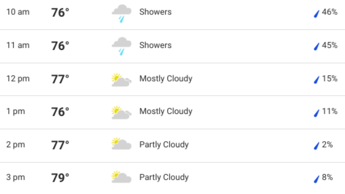 East Meadow Weather Forecast During Match (Local Time)