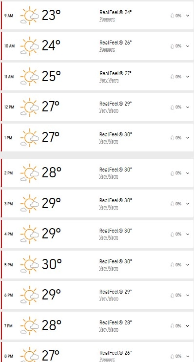 The weather in Manchester is going to be a bit tough for players out on the ground. A heat wave has been predicted to strike Manchester on Sunday, as indicated by the red bars next to the timings. The game, however, would not get affected by any rain interruption.