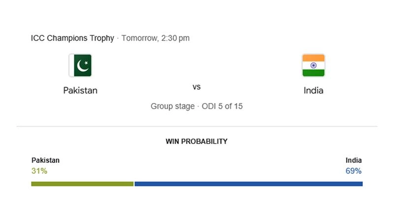 IND vs PAK Google Win Probability
