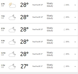 So the match will begin at 8.00 pm IST. The best part is that the rain Gods are expected to stay away from the fixture. As per Accuweather.com, you could have a low possibility of a passing shower which could obstruct the game. Apart from that, there would be no rain. The weather will be around 27-29 degrees Celcius. The precipitation percentage will be reduced to 20 per cent around 7.00 pm local time and will remain constant throughout the evening.