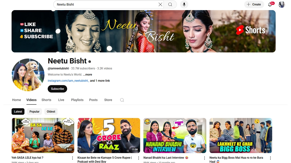 Screenshot of Neetu Bisht's YouTube Account