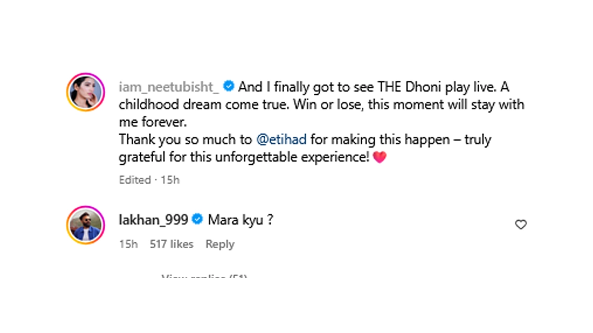 Neetu Bisht's Instagram Post After Attending CSK vs SRH IPL 2025 Match