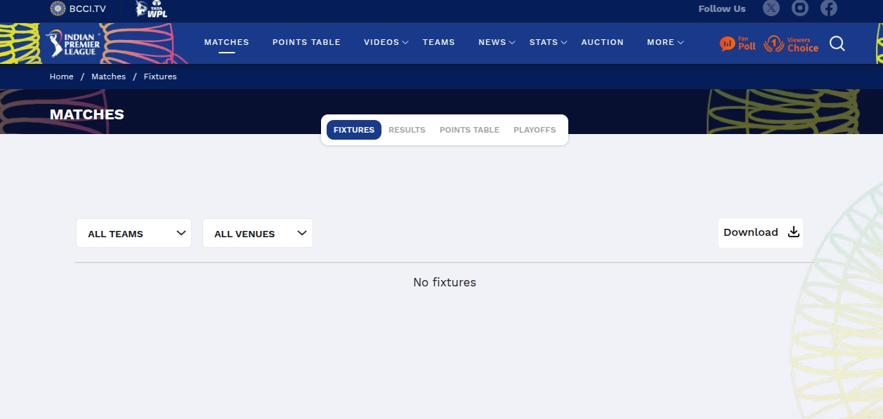 Official IPL Website Schedule Landing Page