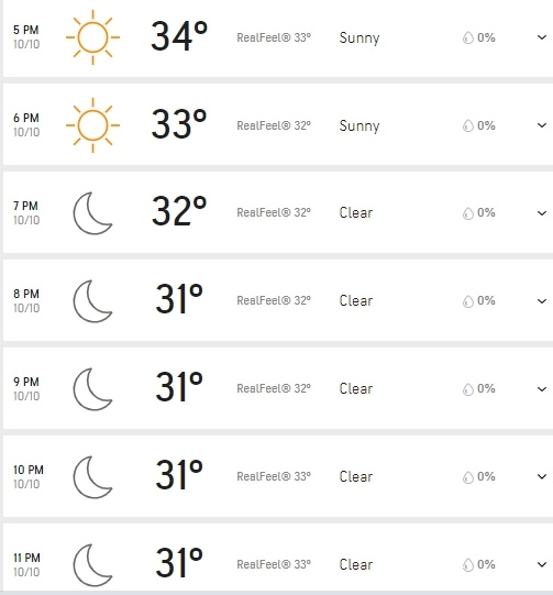 Talking about KKR, Rahul Tripathi has been in the news of late after his knock of 81 runs against the Chennai Super Kings. The team is placed on number four of the points table. Having played five games so far, Dinesh Karthik's men have won three encounters and lost a couple of them. Now, let's have a look at the weather report. So at the start of the game, the weather would be a bit sunny and the temperature would be around 33 degrees Celcius. As the day proceeds, the mercury will drop by a degree.