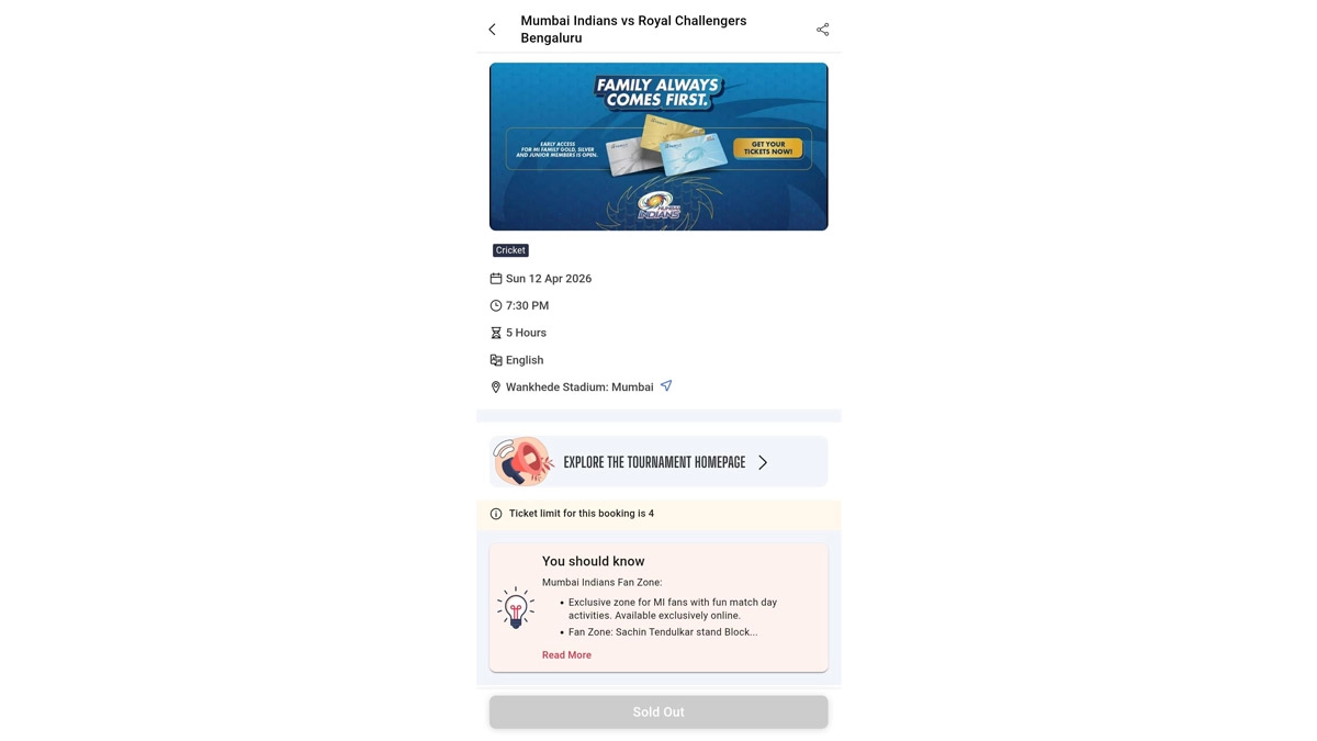 Tickets for the highly anticipated MI vs RCB Indian Premier League (IPL) 2026 clash between Mumbai Indians (MI) and Royal Challengers Bengaluru (RCB) were exhausted within minutes of being released to premium members on 21 March. Demand for the fixture at the Wankhede Stadium reached record levels, with allocations for MI Gold, Silver, and Junior membership tiers selling out almost instantly. How to Buy Mumbai Indians' 'The Mix' Event Tickets Online?.