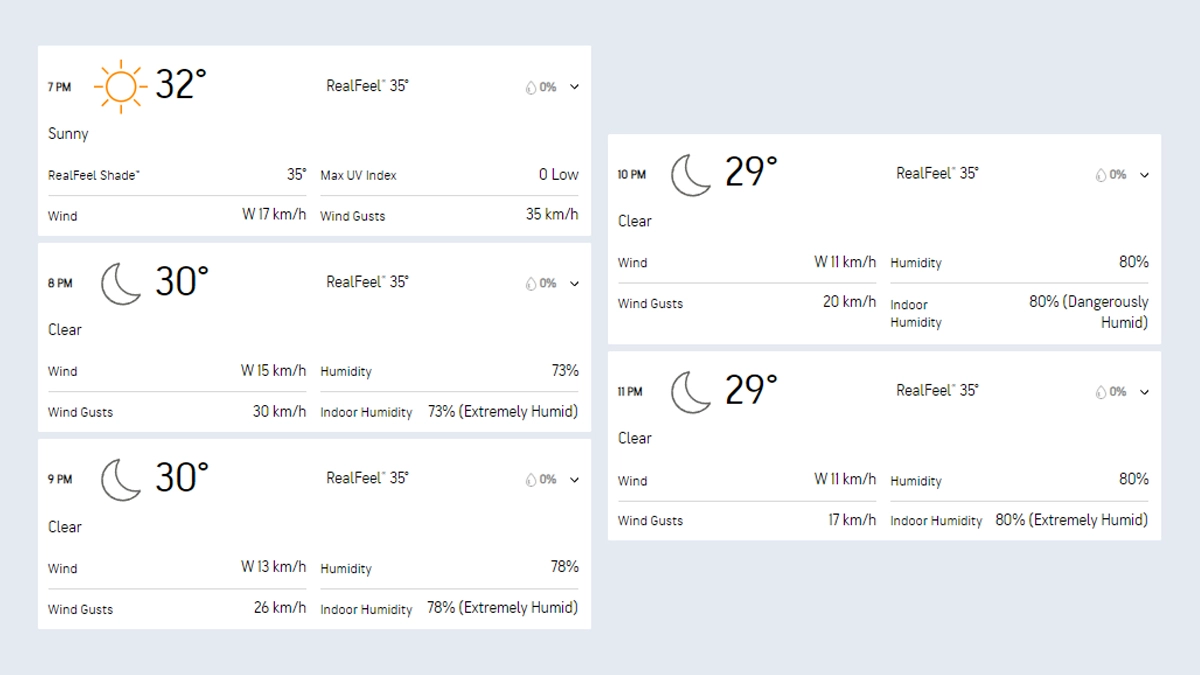 As per Accuweather, the weather in Mumbai is expected to be clear and there are no chances of rain on May 6. The temperature during the MI vs SRH IPL 2024 match is expected to be between 32 degree celsius to 30 degree celsius.