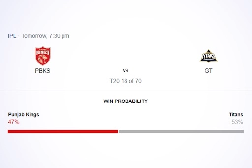 As per Google Win Probability, the Gujarat Titans side are the favourites with 53% winning chance and it is also justified, considering the way they are playing in the current IPL 2023 season. The prediction further states that Punjab has 47% chance of winning the match, proving that the match is expected to go down to the wire. It is a close prediction and considering the depth of both teams, we can expect a nail-biting contest.
