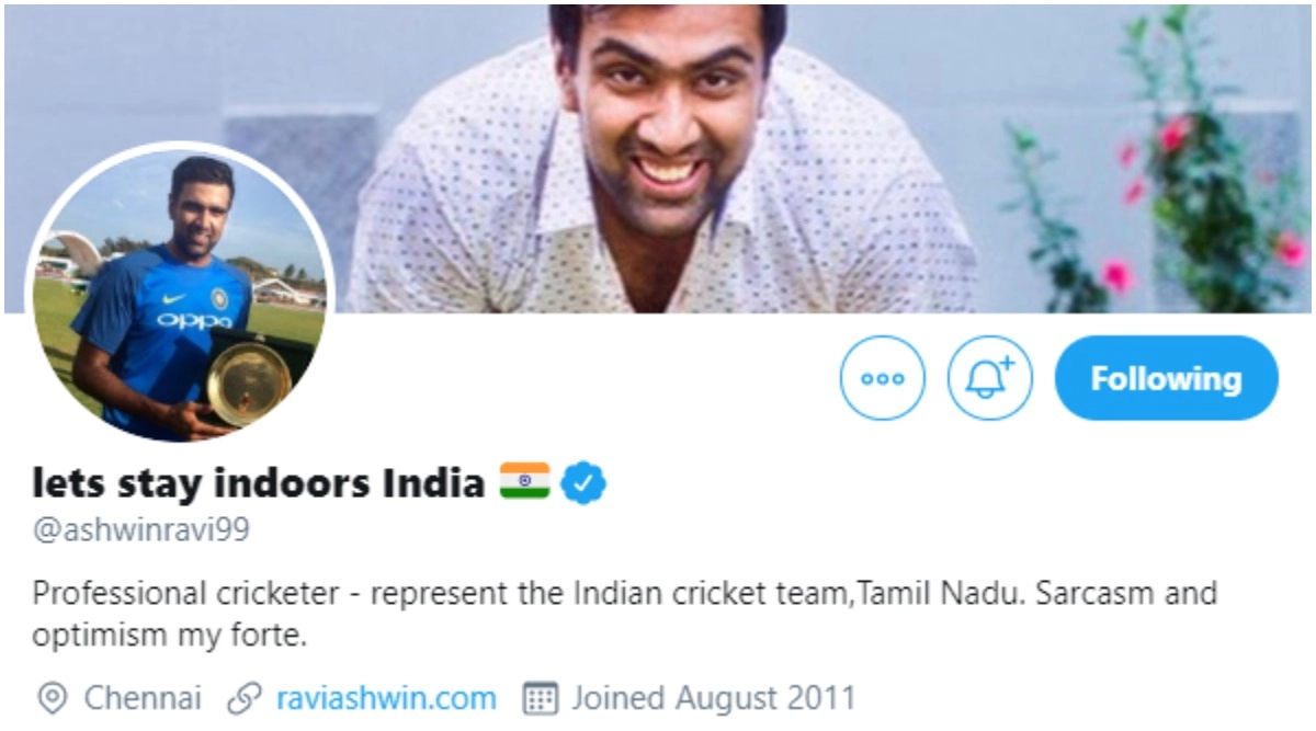 — lets stay indoors India 🇮🇳 (@ashwinravi99) March 23, 2020