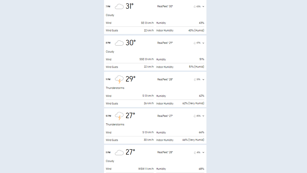 The weather in Chennai on May 12 is expected to be clear. Being an evening match, humidity could be a major factor. Temperatures however will vary between 27 to 31 degrees Celsius. Although there might be cloudy skies on the eve, no rain is expected on the match day. Rishabh Pant Suspended for One Match, Fined Rs 30 Lakh for Maintaining Slow Over-Rate in DC vs RR IPL 2024 Clash.