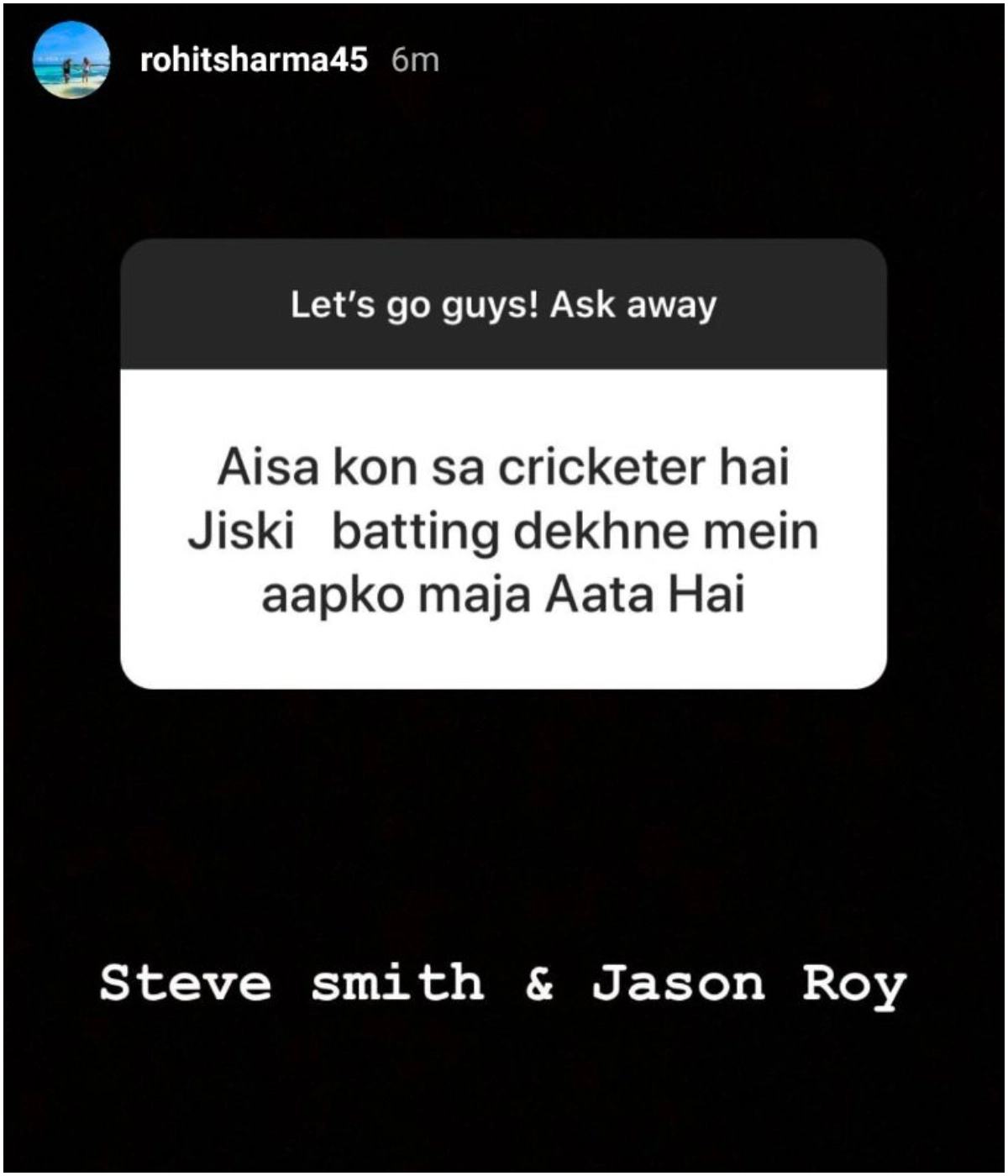In one such Q&A session on Instagram, Rohit was asked about batsmen from the current generation he enjoys watching. “Aisa kon sa cricketer hai Jiski batting dekhne mein aapko maja Aata Hain (Which is the cricketer whose batting you enjoy watching),” a fan asked Sharma in the live session. To this Rohit replied that he loved watching “Steve Smith and Jason Roy.” Rohit Sharma Shares Incredible Six-Hitting Montage, Says ‘Miss Doing This’ (Watch Video).