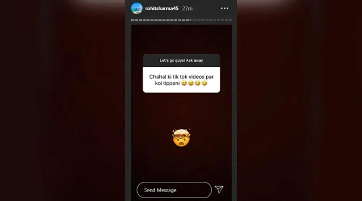 Rohit Sharma and Yuzvendra Chahal are known to share a great bond and the two Indian cricketers never leave any opportunity to pull each other’s leg on social media. Recently, the Indian opener organized a Q/A session on Instagram in which he answered many intriguing questions of the fans. During the course, one social media user asked the Hitman to give his take on Chahal’s TikTok videos. Well, the 33-year-old didn’t write any text over his teammate’s antics but his reaction via an emoji was enough. Replying to the user, the Mumbai Indians captain posted a ‘mind-blown’ emoji which made the fans go ROFL. Yuzvendra Chahal Hilariously Trolls Back Rohit Sharma After Hitman Takes a Dig at Indian Leg-Spinner’s Outfit.