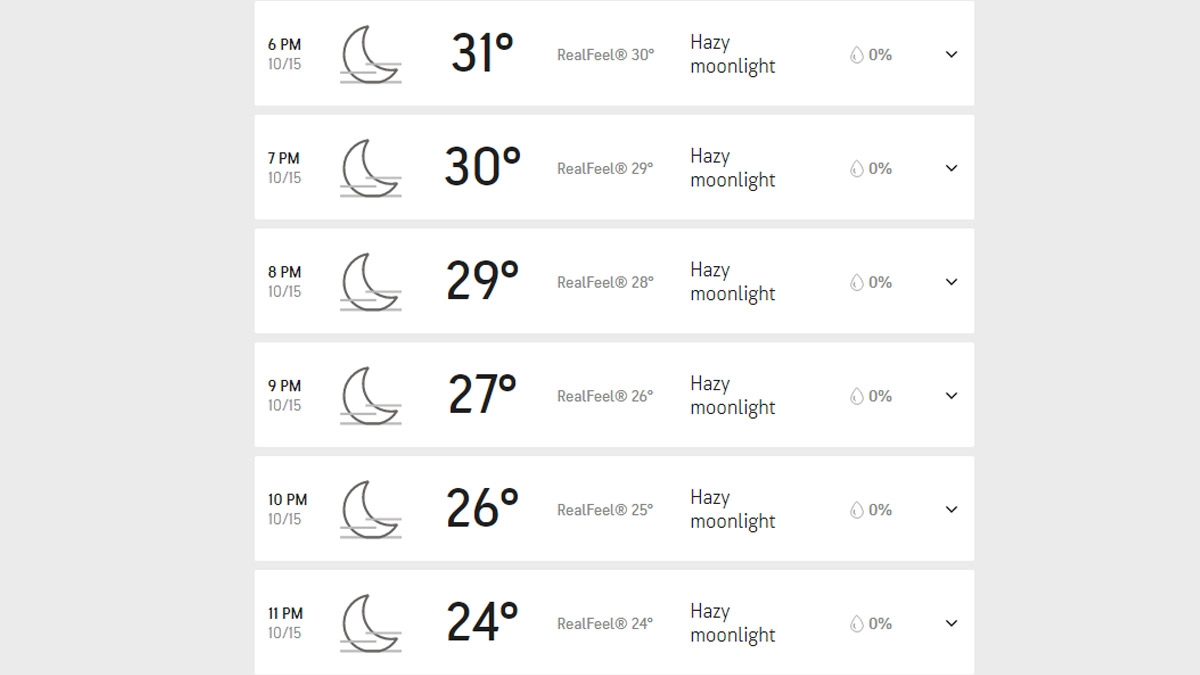 The temperature at Sharjah will be around 30 degree Celsius on October 15, 2020, in the evening as per accuweather.com. The humidity will be around 27 per cent. The wind blowing speed will decrease as the evening progresses which will make it difficult fr the batsmen to clear the rope for maximum.