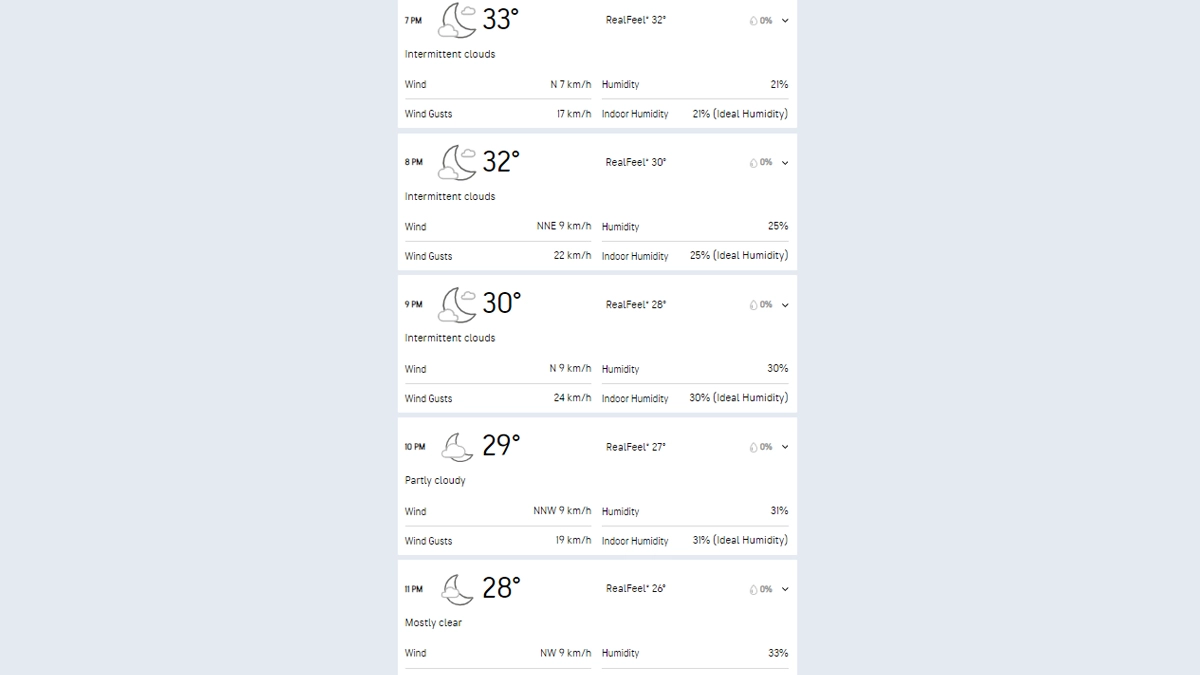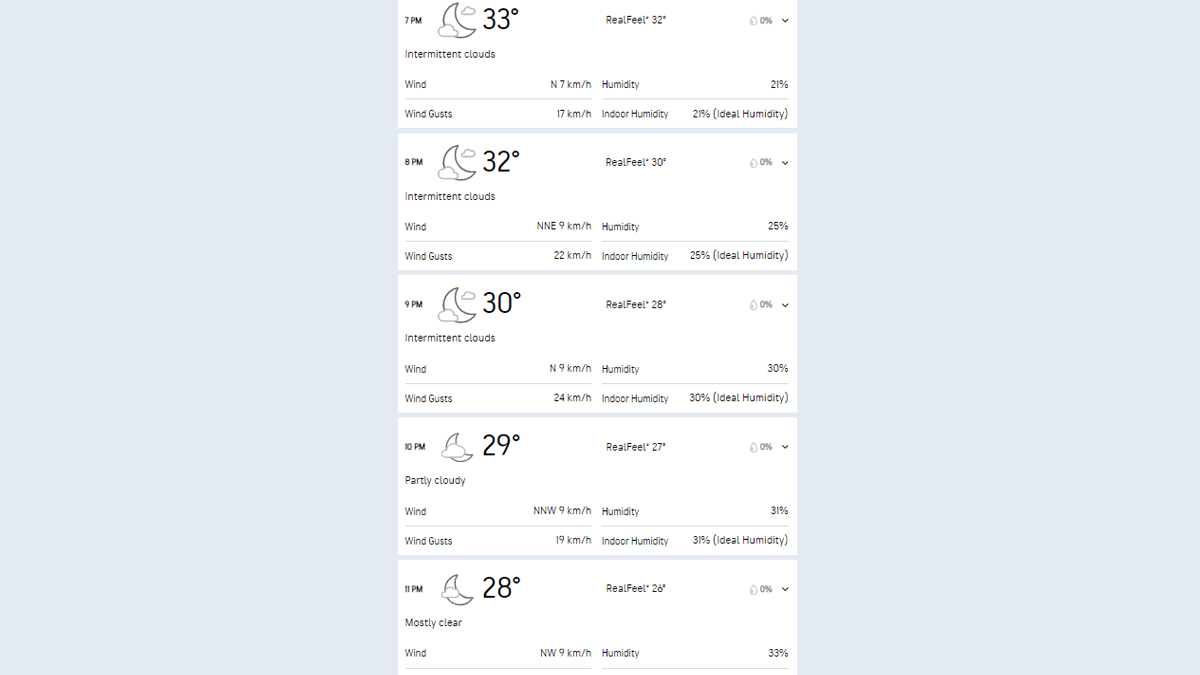 As per Accuweather, the temperature in Jaipur on April 10, 2024, is expected to be between 33 degree celsius to 29 degree celsius during the match hours. No rain is expected during the RR vs GT IPL 2024 match.