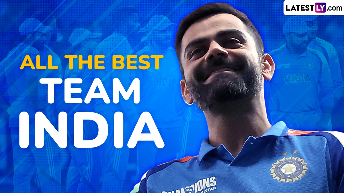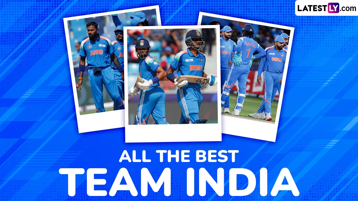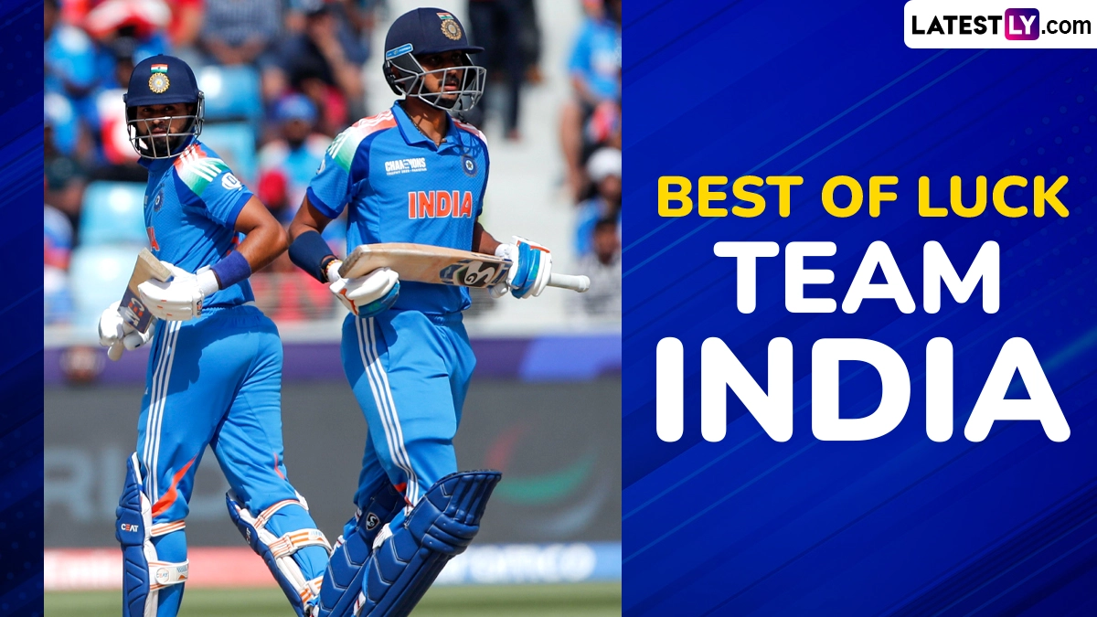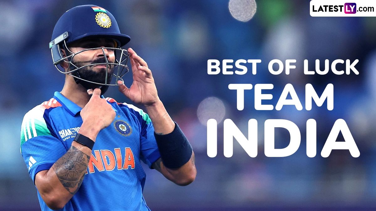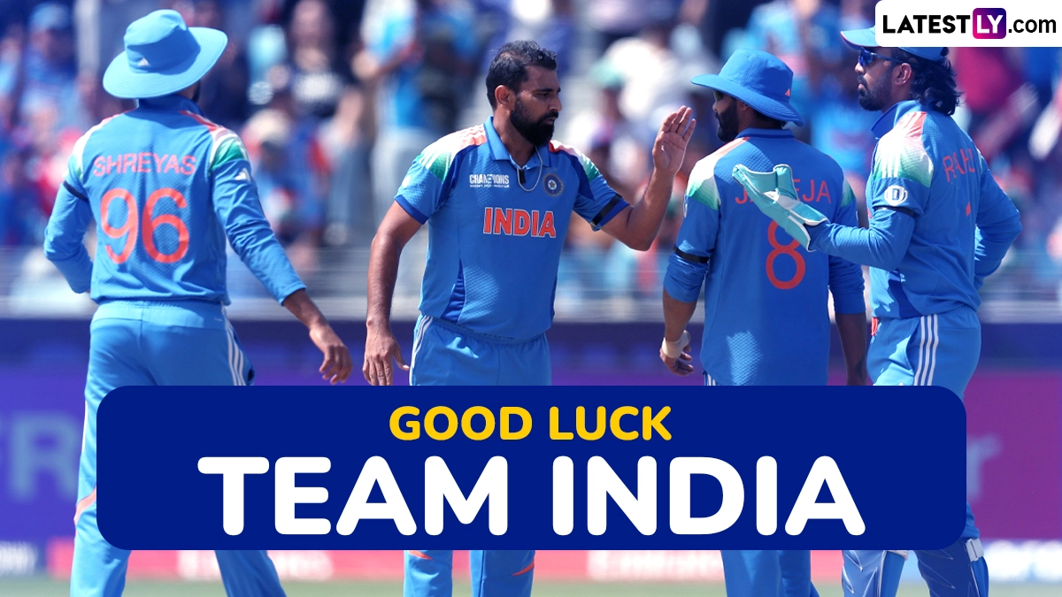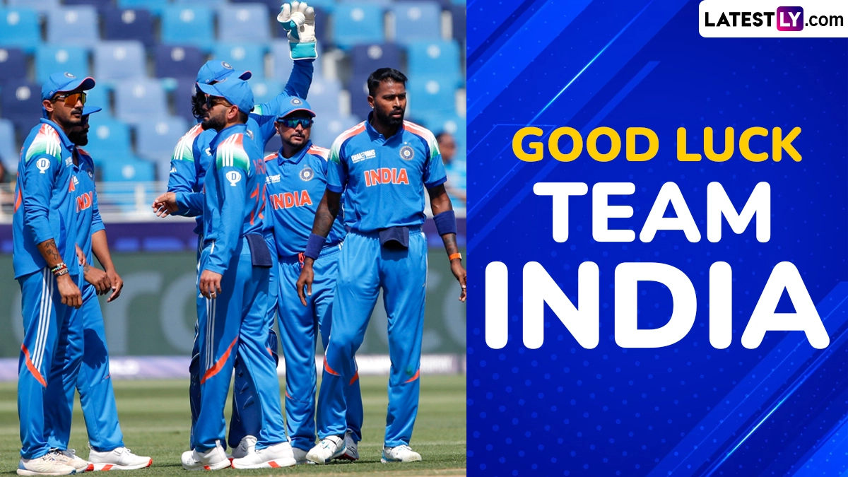 A showdown of epic proportions is on the cards as India lock horns in the ICC Champions Trophy 2025 final against New Zealand in Dubai on March 9. Both teams have had memorable campaigns and now it is time for one last match to determine the winner of the ICC Champions Trophy 2025, a tournament which made a return to the cricket calendar for the first time since 2017. India have made it to their third consecutive ICC Champions Trophy 2025 final and will look to go all the way after having missed out in 2017. But the task would be far from easy against a team like that of New Zealand. As the India national cricket team stars gear up to take on New Zealand in the ICC Champions Trophy 2025 final, we bring you best wishes, good luck images and messages to cheer for Rohit Sharma and his team and also share with friends. Fans can download these images and use them as WhatsApp DPs, status and Facebook and Instagram posts and stories as well. IND vs NZ Dream11 Team Prediction, ICC Champions Trophy 2025 Final: Tips and Suggestions To Pick Best Winning Fantasy Playing XI for India vs New Zealand Cricket Match in Dubai.
