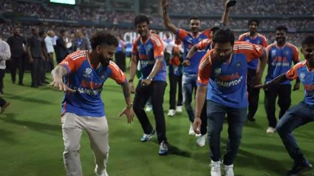 Men in Blue broke into a jig as they took a victory lap around the Wankhede Stadium to the sounds of a loud dhol.