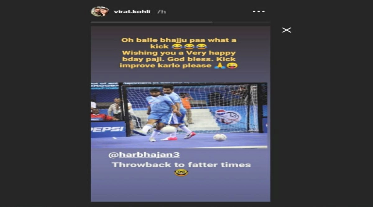 Veteran Indian off-spinner Harbhajan Singh turned 40 on Friday (July 3) and wishes poured in for him from all around the world. On the occasion, Indian skipper Virat Kohli also extended greetings to the Turbanator but in a hilarious manner. Taking to his Instagram story, Kohli shared a throwback picture from a football match and poked fun at his teammate. In the pic, Harbhajan can be seen kicking the football in an uncanny way while Kohli is standing behind. While wishing Happy Birthday to his senior team member, the Indian skipper also asked Harbhajan to improve his kick.Ā Happy Birthday Harbhajan Singh: Virat Kohli, Yuvraj Singh Lead Cricket Fraternity In Wishing Turbanator.