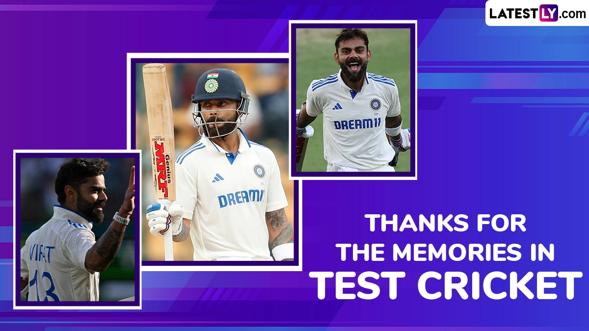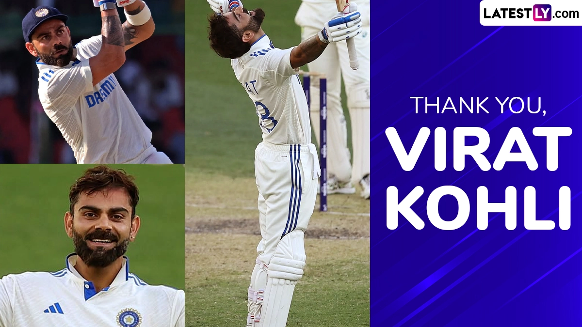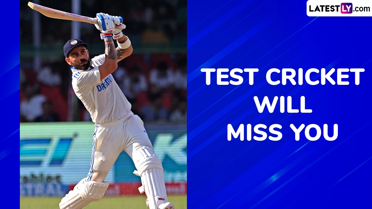 Virat Kohli had a lot of cherished moments in Test ccricket. For a person who aways gives his everything on the field no moment is dull but the star cricketer had that extra bit of more passion when it came to Test cricket. Fans of Virat Kohli are always looking for pictures of the star Indian cricketer in the Indian Cricket Team Test jersey, pasting them on walls, cupboards, desks as well as doors. Virat Kohli has always prioritised Test cricket and helped popularise the format among young viewers across the cricketing world. Given he is a global cricketing icon, even people outside the country have wished him on his Test retirement. They are fans of Virat Kohli and want to collect pictures of him in action for his nation or Test cricket, cherishing that moment as long as they can. Meanwhile, fans can download Virat Kohli wallpapers, and HD images in India jersey for use as WhatsApp or Instagram Stories as he announced his retirement from Test cricket. Virat Kohli Test Retirement: Star Cricketer Bids Adieu to Longest Format After Stellar 14-Year Career.