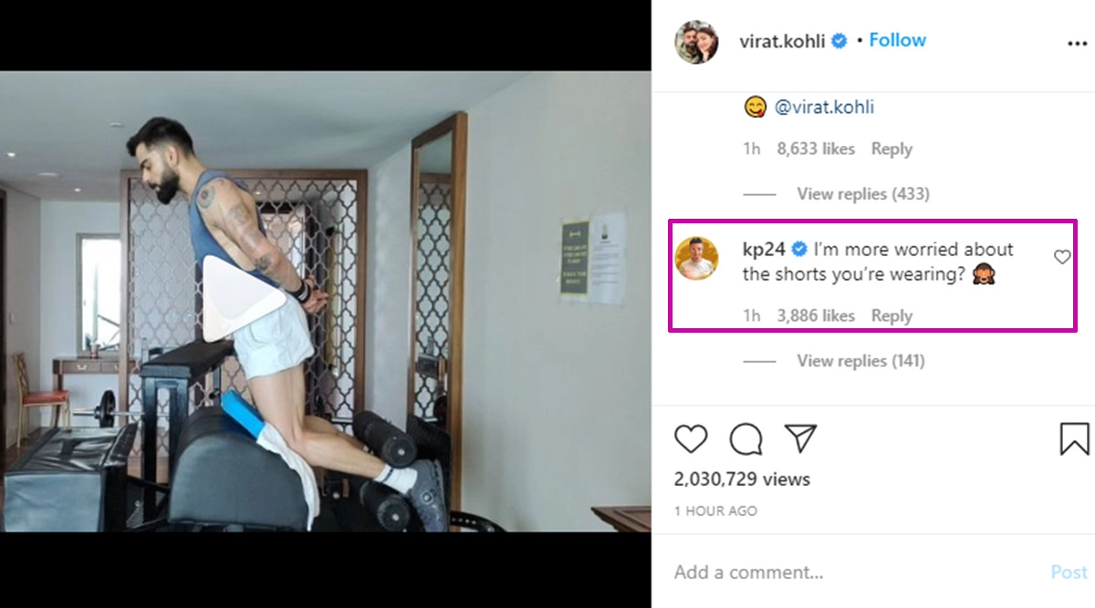 Kevin Pietersen also got involved in the banter making fun of Kohli’s shorts as well. ‘I’m more worried about the shorts you’re wearing?’ wrote the retired England cricketer, to which the RCB captain is yet to respond.