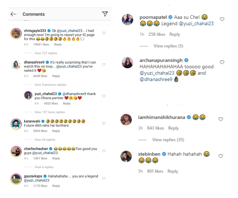 In the video we see, Chahal donning the character of Kokilaben who barges everyone with questions. Dhanashree looked as confused as the other characters in the video. The two made sure to keep the clip as funny as possible. Chris Gayle who watched the video could not stop laughing and commented that he would report Yuzi's Instagram account. Check out the hilarious video below: