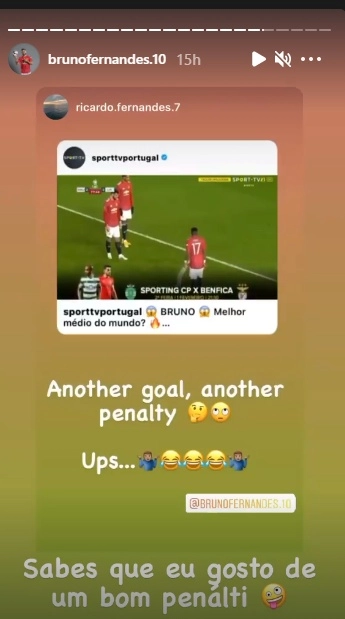The Liverpool fan took to social media and posted a picture of Bruno and the caption of the picture read, "Another goal, another penalty." Ricardo posted the same picture on his Instagram story and responded to the same with the words, "Ups…” After the win, even Bruno Fernandes took to social media and celebrated the win. Here's a look at the post by the fan.